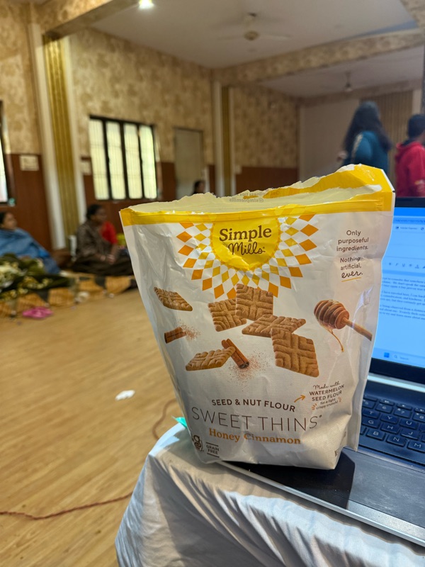 I spend a lot of time being observed from a distance. I can't always understand what is being said, but it certainly is being said about me. It rarely feels critical or mean, but curious and admiring, with kind smiles and open enthusiasm to try and learn more about me. Even as I am writing this, I am seated in a big room littered with flowers, wrappers, and cups from the impromptu dance party that happened last night, which serves as an overflow room for sleeping, eating, and of course, blog writing. A couple handfuls of the elders didn't choose to join the rest of the family for the ghat tour and boat ride, but instead sip tea and chat in here. They are sitting all around me, not speaking to me, but at times I come up as a topic. I offered them my organic cinnamon thins, which are perfect with coffee and tea and insisted everyone try one.