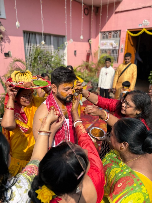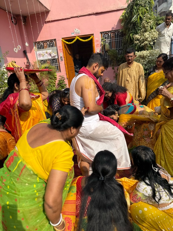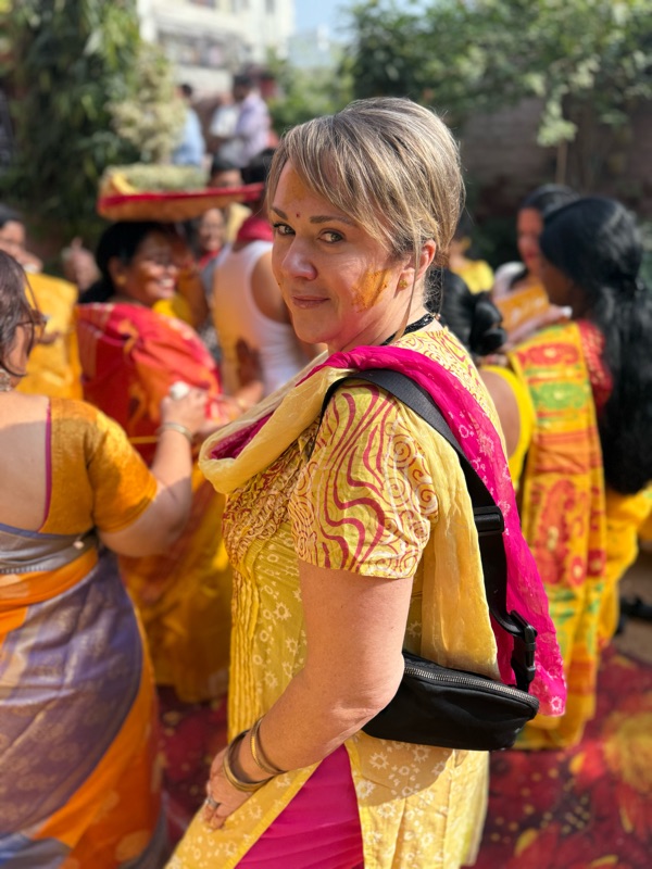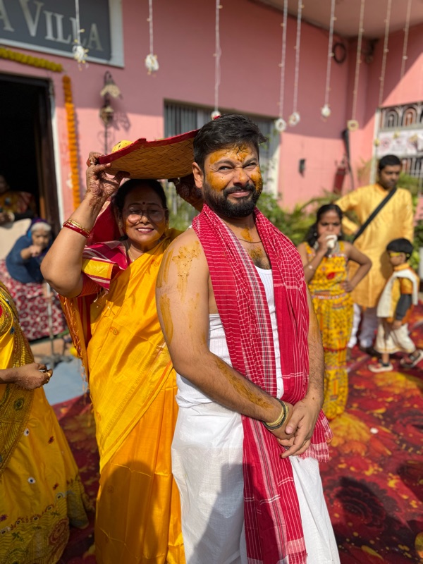Everyone wears yellow to represent the turmeric. I was not told this the last time so I made sure to have something yellow prepared.