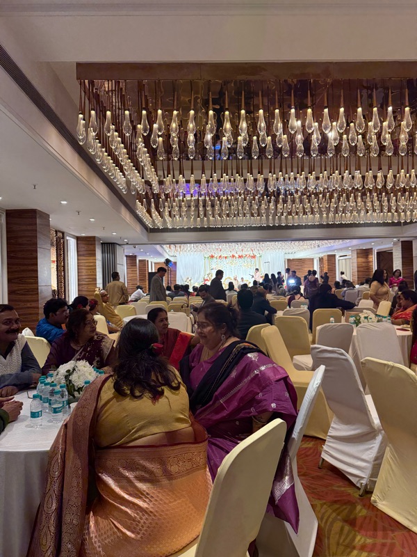 After several hours of pre-wedding festivity, we arrived at the wedding venue, and as the groom started some rituals outside, we were escorted inside to find food and drink stations everywhere. The hotel was very nice, and the food was excellent. The groom was then put up on a stage in this fancy chair, where he basically just sits and is photographed for what feels like hours before the bride comes in and joins him. I thought at this point the wedding would start, but they just sat there well past 2am, when I was told many of us were taking the bus back home!