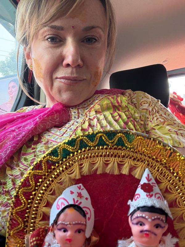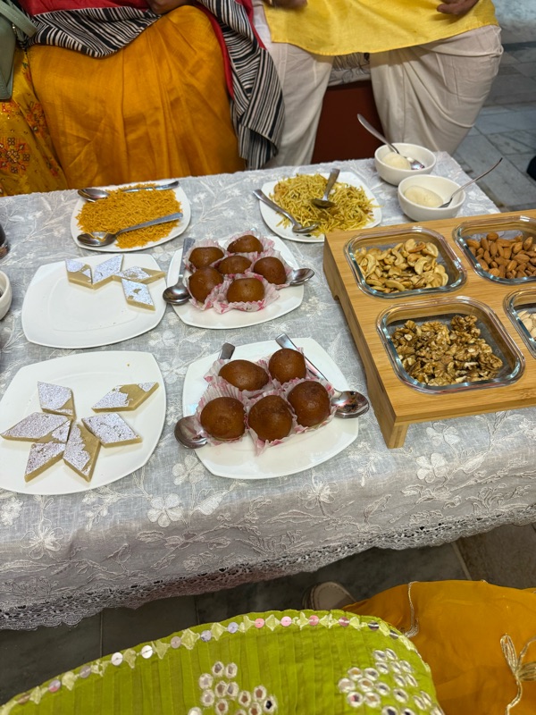 I was then asked to join a group of elders to go over to the bride's house and deliver the turmeric and visit. I hadn't met anyone from their side yet, so this sounded like a fun idea. We all piled in a few different cars, and before long, Indian Eric had us over there.