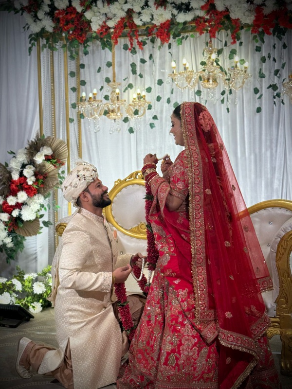 After all the typical photo shoots, the groom appeared and was promptly put into a decorated car.