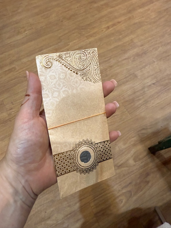 Before long, a few of the ladies are brought to the back of the house where the bride is. She is still getting ready at this point, and I can imagine she is very nervous to meet all these family members, let alone have them in her room while she is getting ready. Everywhere we go, the bride's family members are standing around observing us. I can only imagine what they were thinking of me! They were very sweet and polite, and as soon as we returned to the original room, more snacks and drinks appeared. The bride went down to this decorated small room, where I think they were going to do the rituals. She seemed very sweet and down-to-earth to me, so I instantly had a good feeling about how this was going to go. On the way out, the bride's grandmother handed each person an envelope full of cash. I had no idea this was going to happen or I surely would have been more excited to go! Snacks AND cash, what more could you want!